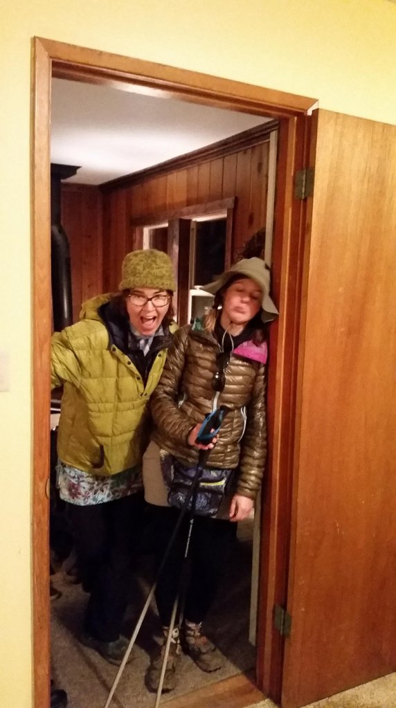 It was getting dark and scary about 3 miles out of town, and it turns out prescription sunglasses dont work none too good with a headlamp. Actually they just cancel each other out in a weird, dimensionless haze. I had only brought sunglasses since I wanted to be as m.k minimalist as possible, and figured I’d always either be hiking in the sun or sleeping. Good one, Reborkles. Luckily Leslie had set out to meet me on the trail and found me wandering around like Stevie Wonder in the dark. She hugged me and pulled a frosty Coor’s out of her pack, asking if I’d like to chug it before we braved the dark 3 miles ahead. Erm..YES. Best beer I’ve ever tasted in mah lyfe. She put on my headlamp and basically led me down the winding trail and through the campground on the edge of town. Finally we arrived around 9pm! I met Keith and their other friend from Canada, Angela, and we had a great time at dinner as I recounted my foibles of the day to them. They had tons of advice on how an inexperienced, or really any, thru-hiker should begin a long journey. I was doing almost everything wrong, it turns out: pushing my pace and distance too much, ignoring pains that became injuries, and giving in to the pressure of doing 20 mile days just to keep up or feel like I was making good time. Never has a glowing cabin looked so good to me, or dinner tasted so good, or advice been so welcome, or a couch with tons of fluffy blankets feel so comfortable.
